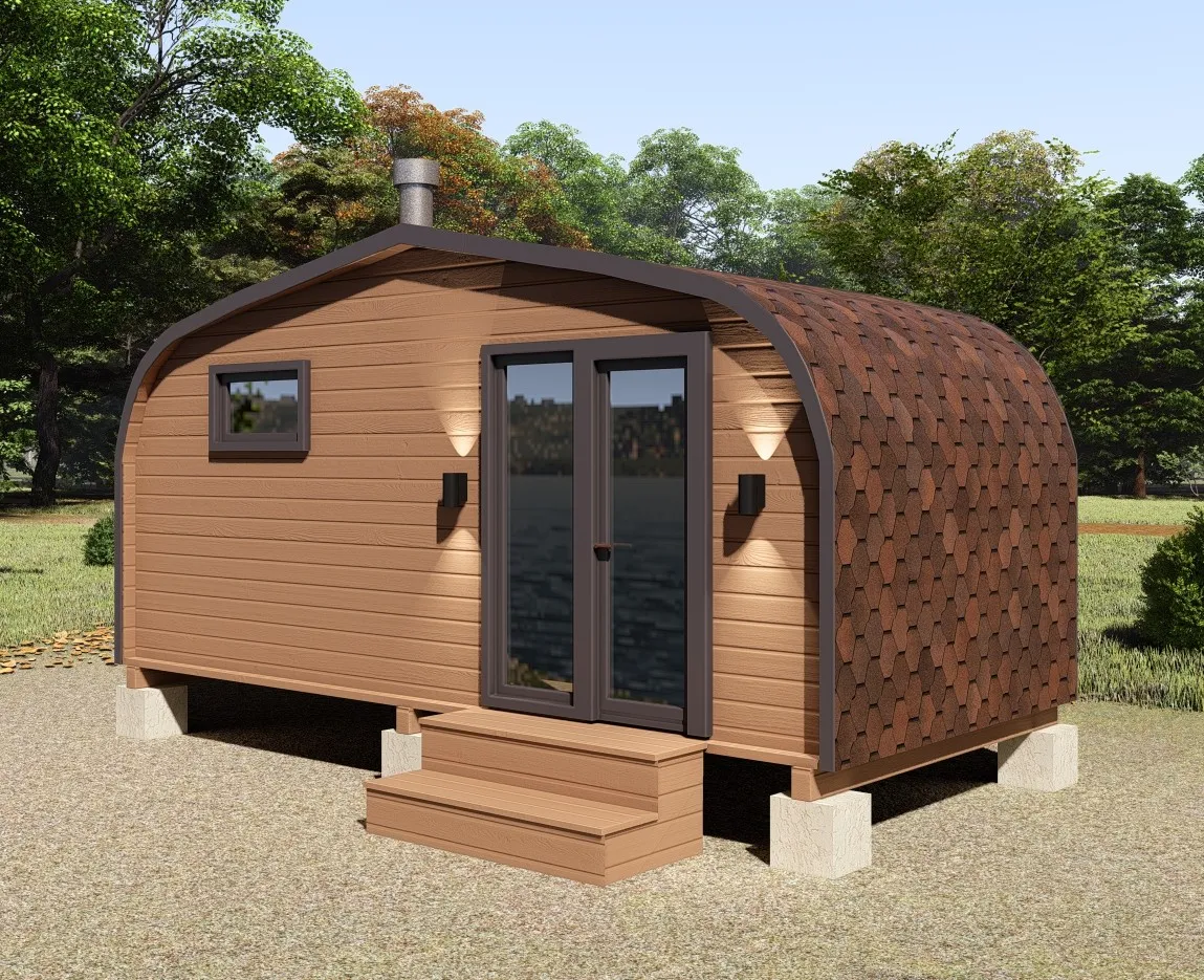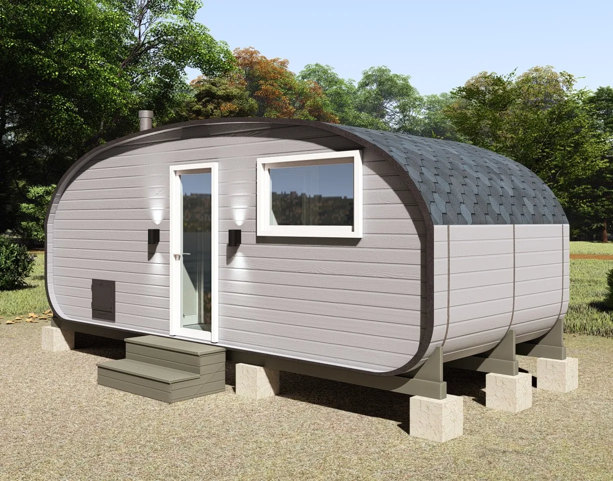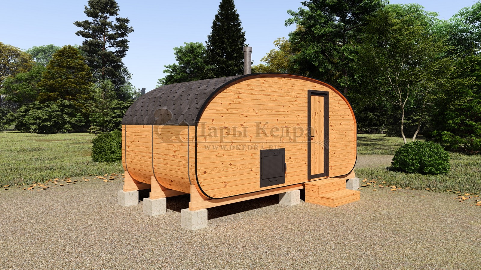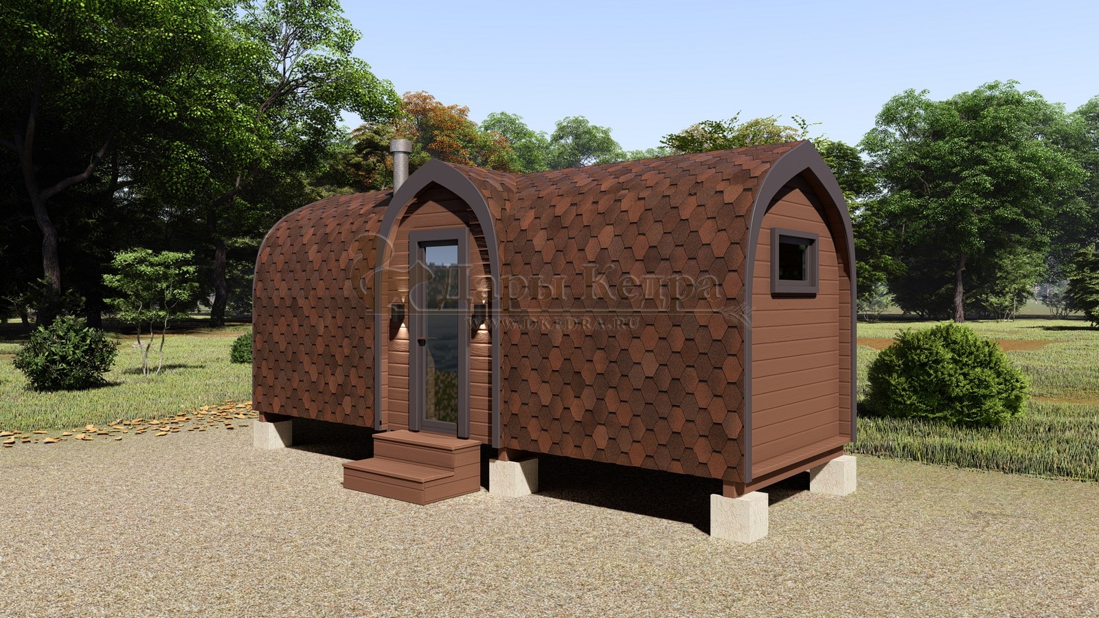 Симбиоз круглой и квадратной бани-бочки. Разработано с учётом эргономики, в ней так же просторно, как и в квадро-бочке, но при этом полукруглая крыша не дает задерживаться снегу и влаге на кровле. А еще такая баня безусловно красивая, мобильная и доступная каждому!