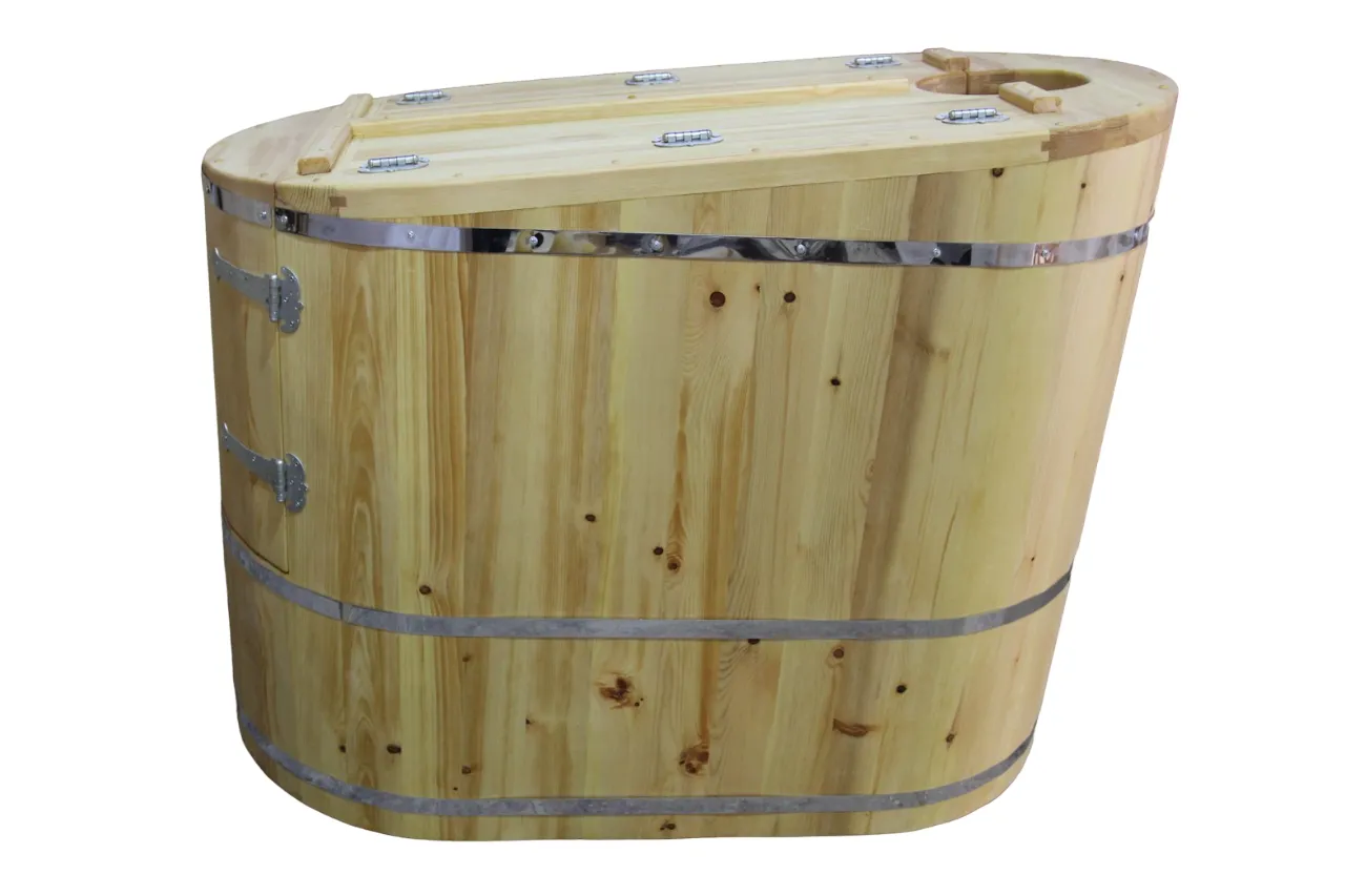 Овальная фитобочка из кедра - это мини парная, которую можно использовать не только в спа-салонах, но и дома. Овальная модель более просторна и удобна в использовании. Толщина стенок составляет 25 мм. Верхний скос делает положение головы более комфортным и улучшает обзор. Она оборудована откидными створками, дверцей и отверстием для головы. Во время парения человек сидит внутри кедровой бочки, а голова находится снаружи. Благодаря этому исключается возможность перегрева. Подлокотники из кедра, встроенные ручки на створках и двери делают эксплуатацию более удобной.