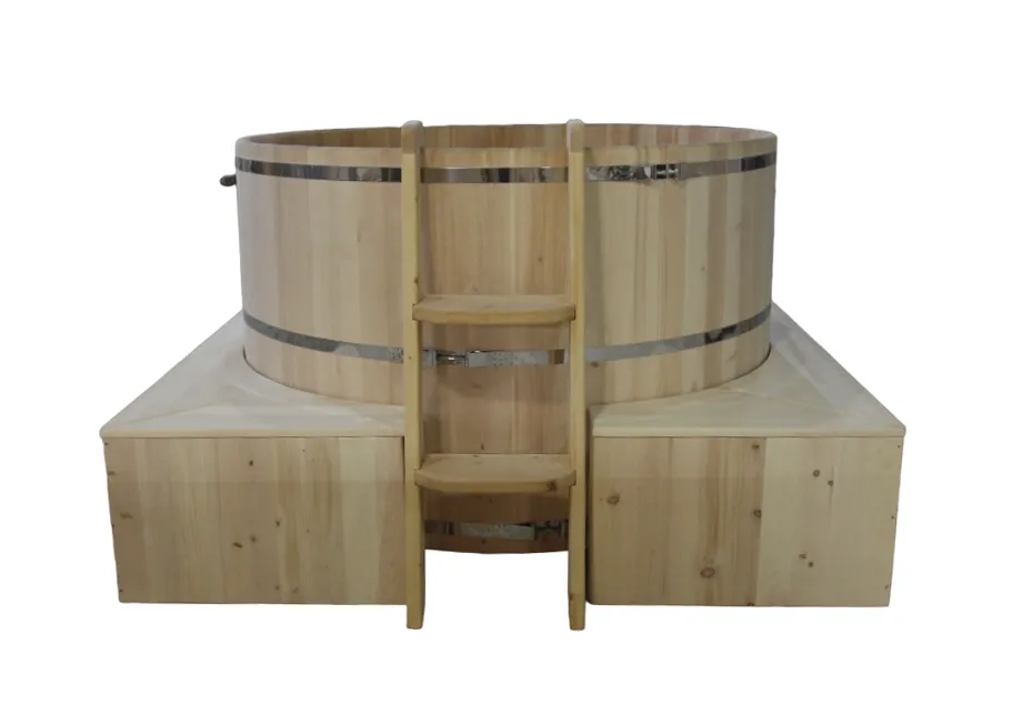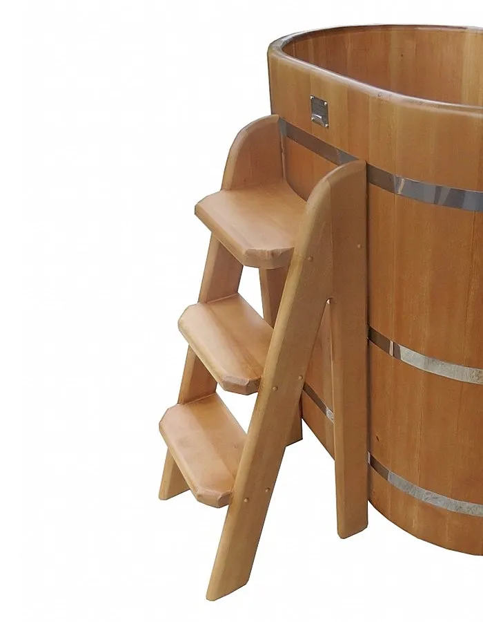 Это емкость для воды с прямоугольной пластиковой чашей. Купель предназначена для отдыха и охлаждения тела после процедур парения. Подходит для уличного и комнатного использования. Для удобства пользования овальная купель с пластиковой вставкой оснащена лавочками, приставной и внутренней лестницей из кедра.