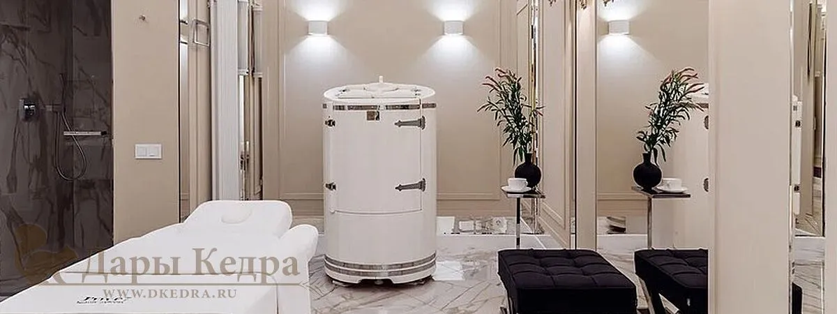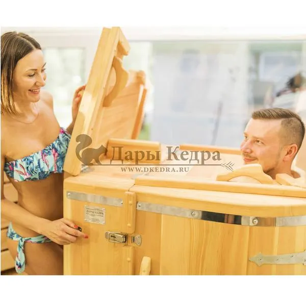 Кедровая фитобочка - это мини-парная, которая занимает не больше 1 кв.м., поэтому может быть установлена практически в любом помещении. За счет своих небольших габаритов она получила распространение и популярность среди салонов красоты, массажных кабинетов, оздоровительных центров. Конструкция кедровой парной предполагает наличие установленного сиденья и подлокотников для комфортного фитосеанса, который длится в среднем 15 минут. Голова пациента находится снаружи, вокруг шеи пустое место закладывается полотенцем, препятствующим выходу пара изнутри. Данная процедура практически не имеет противопоказаний и ее легко переносят даже дети и пожилые люди.